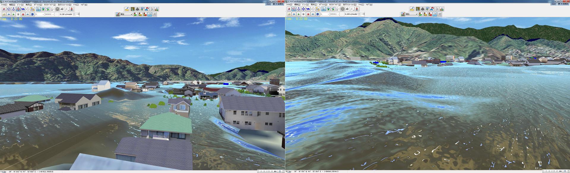 | ▲UC-win/Road Ver.6による津波シミュレーション |