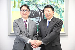 | ▲CRAVA代表取締役社長 香月蔵人(左)、フォーラムエイト代表取締役社長 伊藤裕二(右) |