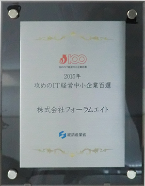 株式会社フォーラムエイト(東京都港区港南2-15-1 代表取締役社長 伊藤裕二 URL:http://www.forum8.co.jp) は、経済産業省が今年度から新たに行う、「攻めの分野」でのIT利活用に焦点を当てた「攻めのIT経営」中小企業百選に選定されました。 これは、ITの効果的な活用による製品・サービス開発強化やビジネスモデル変革といった、積極的な取り組みおよび成果を「攻めのIT経営」の観点から評価し、IT活用内容等について優れた中小企業が今後3年間を目途に100社選定されるものです。今回は第一回として33社が選定され、2015年10月27日表彰式が執り行われました。