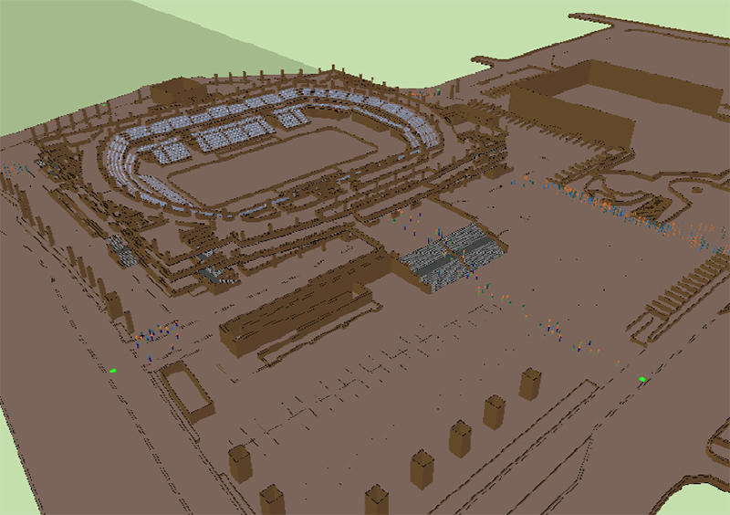 ロンドン・ミレニアム・ドームやシドニー・オリンピック・スタジアムなど、世界各地のあらゆる主要施設における火災・避難解析で利用されており、多くの実績を持っています。EXODUS・SMARTFIREにより、火災などさまざまな条件・環境の建物内から避難する各個人の経路を検出・追跡した解析結果は、UC-win/Roadのシミュレーション機能によりVRで表現できます。