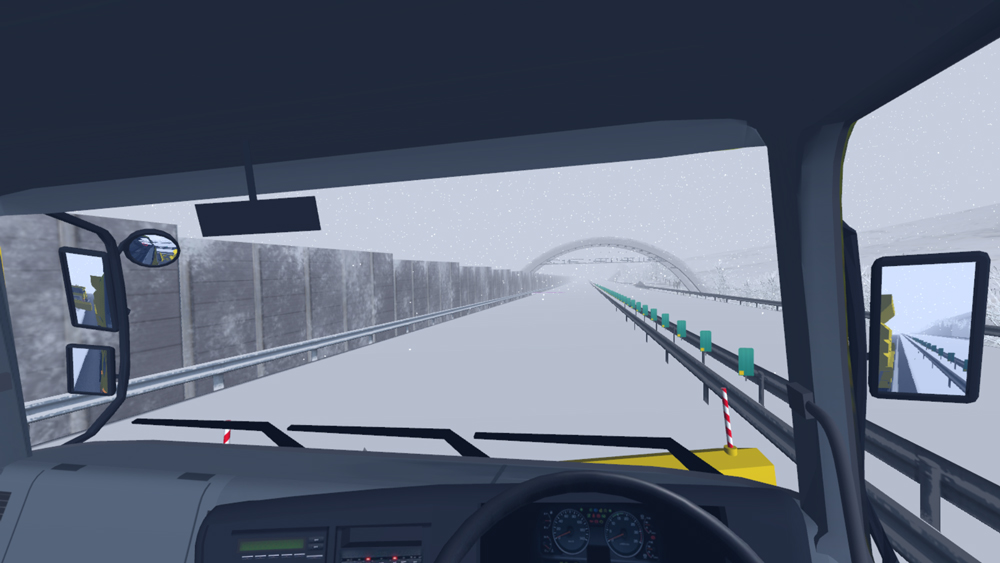 そこで、フォーラムエイトでは同グループとの共同開発により、UC-win/Roadを活用して除雪車両のコックピットを再現し、実車両に近い状態で除雪車両オペレーション訓練が可能な「車両操作シミュレータ」を構築しました。