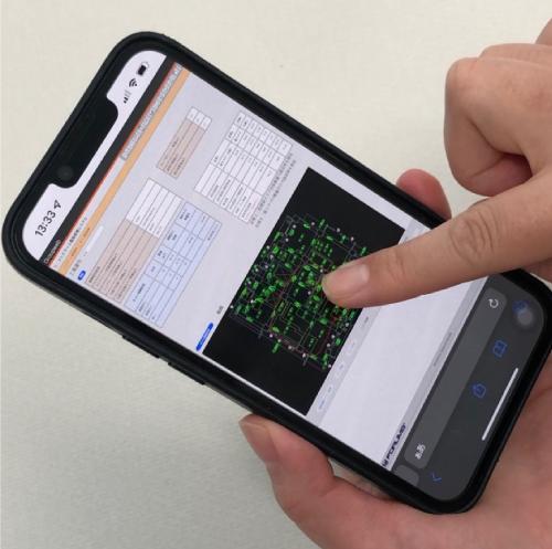 本システムは、現場技術者にとって、打設状況や進捗スピード、コンクリートの残数量や出荷状況などをリアルタイムに把握しながら限られた時間で未打設範囲の実測と計算を進めるなど、打設管理業務が非常に大きな負担となっていたことに着目し、DXによる現場の生産性向上をふまえて開発されました。タブレットやスマートフォンなどのモバイル端末で使用できるアプリとなっており、画面に表示された施工図面で未打設領域を囲み指示することで、該当領域のコンクリート体積を算出し、最終的に必要なコンクリートの調整量を自動計算する機能を備えています。