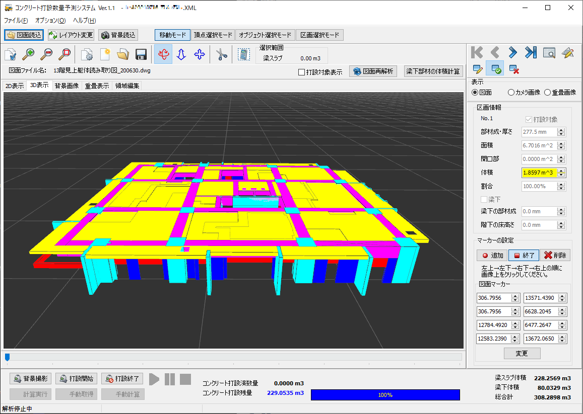 株式会社フォーラムエイト(本社:東京都港区港南2-15-1、社長:伊藤裕二、URL:https://www.forum8.co.jp)と西松建設株式会社(東京都港区、社長:髙瀨伸利、https://www.nishimatsu.co.jp)は、コンクリート未打設部分の領域から最終的に必要なコンクリートの調整量を自動計算できる、コンクリート打設管理システムを開発しました。これにより、打設現場におけるスムーズな打設数量の調整、業務効率化による現場技術者の長時間労働の軽減を実現し、残コン・戻りコン(工事現場で使用されずに処分されるコンクリート)の大幅な抑制による環境負荷の低減に貢献します。