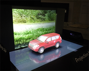通常のプロジェクションマッピングでは、観客は限られた方向からしか見られませんでした。車のような立体モデルに対して、一方向のみの投影映像しか見ることはできませんでした。