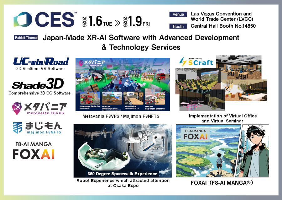 FORUM8 Co., Ltd. (2-15-1 Konan, Minato-ku, Tokyo. President Yuji Ito. URL: https://www.forum8.co.jp/english) will exhibit at the world's largest digital technology trade show CES held from January 6th to 9th, 2026 in Las Vegas for four consecutive years.