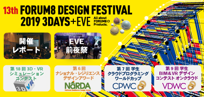 The latest software, system case studies, and technologies/researches gather at this event hosted by FORUM8. Award Ceremony of3D・VR Simulation Contest, NaRDA, and the student competitions CPWC and VDWC.
