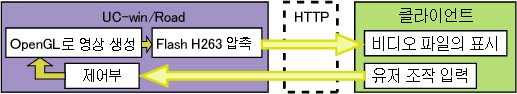 서버와 클러이언트의 통신 프로토콜에 HTTP를 사용합니다. 접속 서버에서 Flash클라언트로 영상을 보내고, 조작