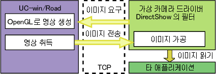 비디오 카메라 디바이스를 사용 가능한 많은 애플리케이션과 제휴할 수 있도록, UC-win/Road가상 카메라와 DirectShow필터를