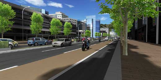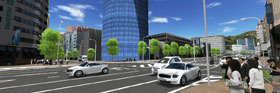 관계자에게 이 계획을 이해받기 위한 목적으로 UC-win/Road에 의한 데이터 작성이 실시되었다. 횡단보도 이외의 장소에서 랜덤으로