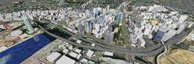 데이터베이스로써 공간의 재배분 검토 뿐만 아니라 시간축을 고려한 교통이나 사람의 동선, 방재 등의 해석으로의 전개도 도모하고 있다. |