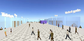| P-SIM(보행자 유동 시뮬레이션)을 이용한 재난시의 VR시뮬레이션 |