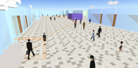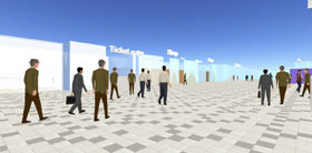 역구내에서 승객이 전철에서 내리는 타이밍 등을 고려해 보행자 유동을 해석하는 소프트웨어(P-SIM)를 개발하여 시뮬레이션을 실시했다.