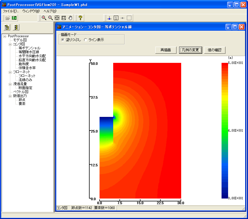 2次元FEM飽和-不飽和浸透流定常/非定常解析プログラム