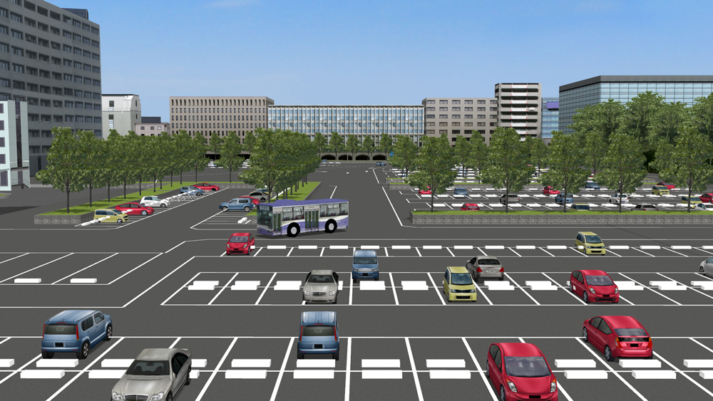 交通シミュレータによる演算結果をUC-win/Road上で再生できるVRモデルの作成を行います。交通状況は、UC-win/Roadのマイクロシミュレーションプレイヤー機能を活用し、車両(必要に応じて歩行者、自転車にも対応)の交通挙動を再生できるモデルの作成を行います。