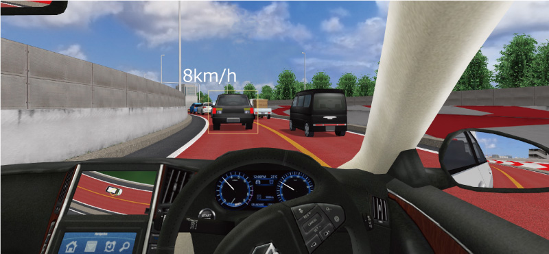 オープンデータや設計段階のデータを活用し、実空間と位置情報を連携させたVR空間を効率よく作成。各種ドライブシミュレータを接続し実ドライバ挙動を考慮した実験に適用できます。