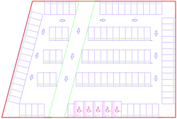- 「標準駐車場条例」「道路構造令」などの作図理論に基づいて、駐車場規格に基づいた駐車場設計を支援