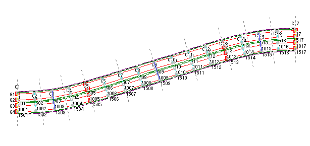 | 横断面形状 | 歩道付き、歩道なし、中央分離帯考慮可能 支間ごとに始端と終端の断面形状をパラメータ入力 各部断面形状を曲線補間または直線補間で自動作成 任意箇所の断面形状を1支間につき10個所まで |