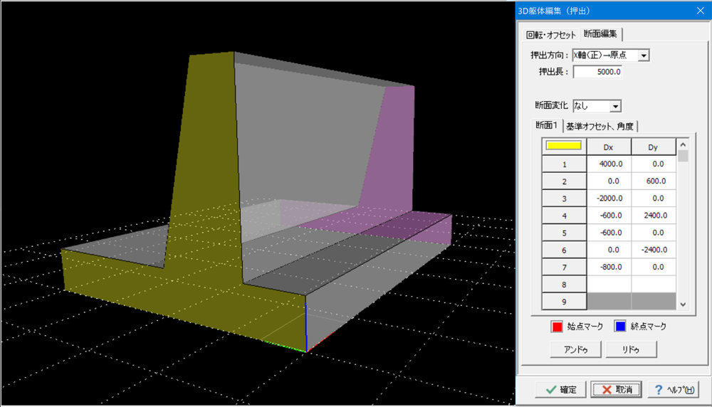 3Dオブジェクトは「押し出し」「スイープ」等で作成することができます。その場合に使用する「断面」を2Dオブジェクトで作成、または既存の図形から選択後に、「押し出し量」「パス」を指定することで容易に3Dオブジェクトを作成することができます。