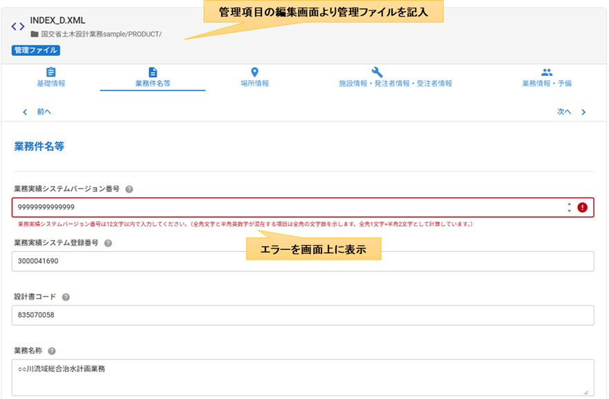 記入内容は画面上でチェックを実施しますので、不適合箇所の修正が簡単に行えます▲管理項目の編集画面