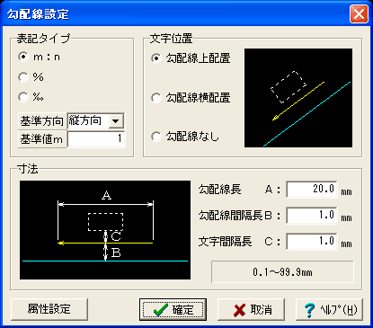 土木図面に使用される「寸法線」・「引出線」・「クロソイド曲線」・「標高線」・「省略線」・「勾配線」・「傾斜マーク」等の作図が専用コマンドにより簡単に行えます。