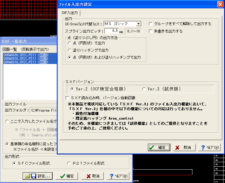 | ファイル出力 | PSX、SFC、P21、DXF、DWG、JWW、JWC、SDF、HDF、PSR、RDF |