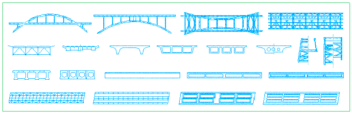 橋桁、アーチ橋、トラス橋、補剛桁、PC斜π橋(本線横断図、桁高詳細図、結合部詳細図など含む)
