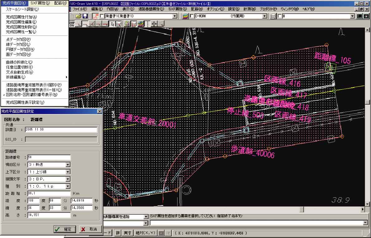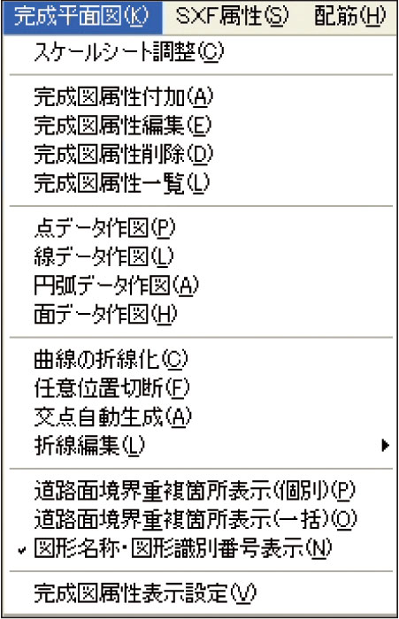 財団法人日本建設情報総合センターにおいて策定された「拡張DM-SXF変換仕様(案)(H18.6)」に対応した「測量」メニューに対応。