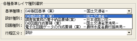 国土交通省「CAD製図基準(案)」、日本道路公団「調査等業務の電子納品要領(案)」、国土交通省港湾局「CAD図面作成要領(案)」、農林水産省農村振興局「電子化データの作成要領(案)」、国土交通省大臣官房官庁営繕部「建築CAD図面作成要領(案)建築編」 への対応として以下の機能をサポートしています。