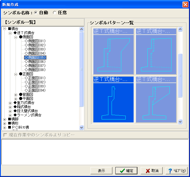 表を簡単に作成するための「作表編」、ビットマップデータを取込み、ラスターシンボルを生成する「ラスター編」、鉄筋表の作成/編集を行う「鉄筋表生成」、寸法入力で図形を生成する「パラメトリックシンボル」、測点などのデ-タを入力することで作成する「帯表生成機能」としてサポート。