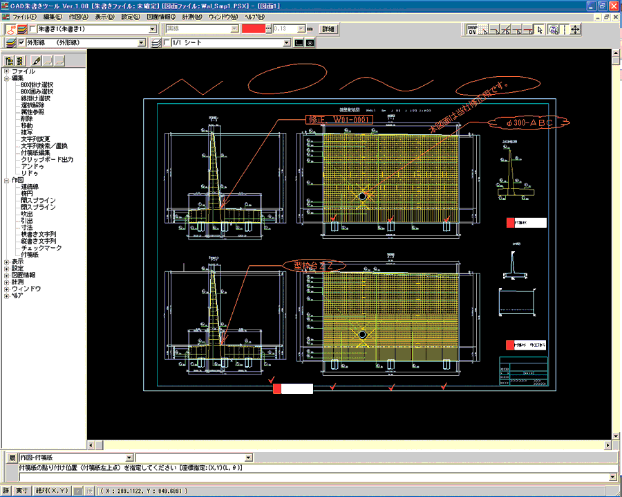 土木専用2次元・3次元汎用CAD、朱書き機能対応版