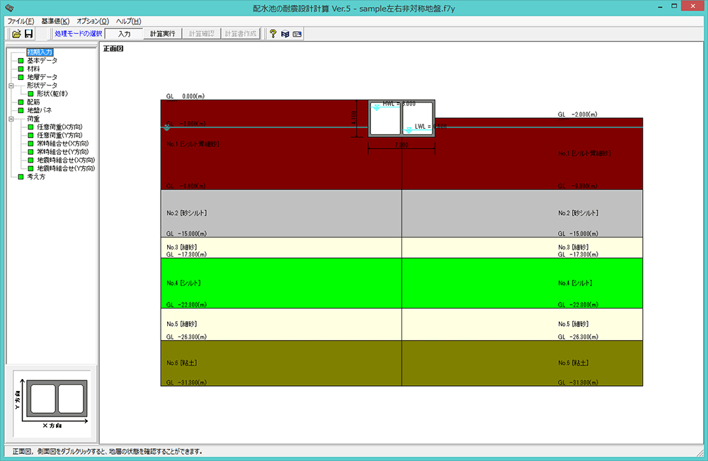 水道施設耐震工法指針(1997年、2009年、2022年)日本水道協会に準拠し、配水池の耐震設計計算を行うプログラムです。