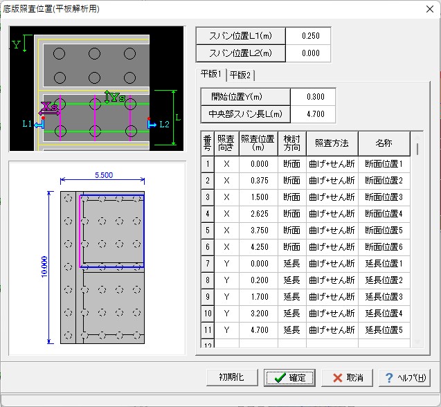 なお、各部材の照査位置については、連続梁・控え壁、片持ち梁毎の個別指定可能。