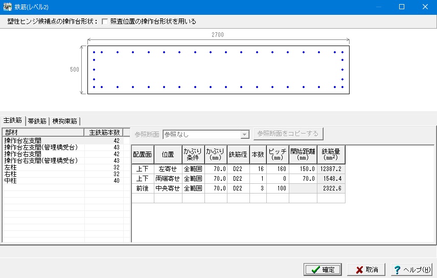 | 操作台鉄筋 | 横方向主鉄筋、縦方向主鉄筋、組立筋 | |