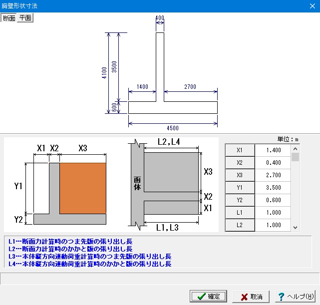(門柱、胸壁、翼壁、しゃ水工)の設計計算、図面作成プログラム