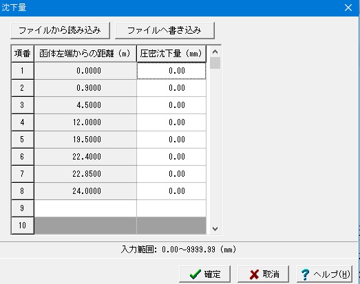 | しゃ水鋼矢板設置数 | 最大50 ※鉛直バネ値(軸方向バネ定数)を算出することが可能です。 |
