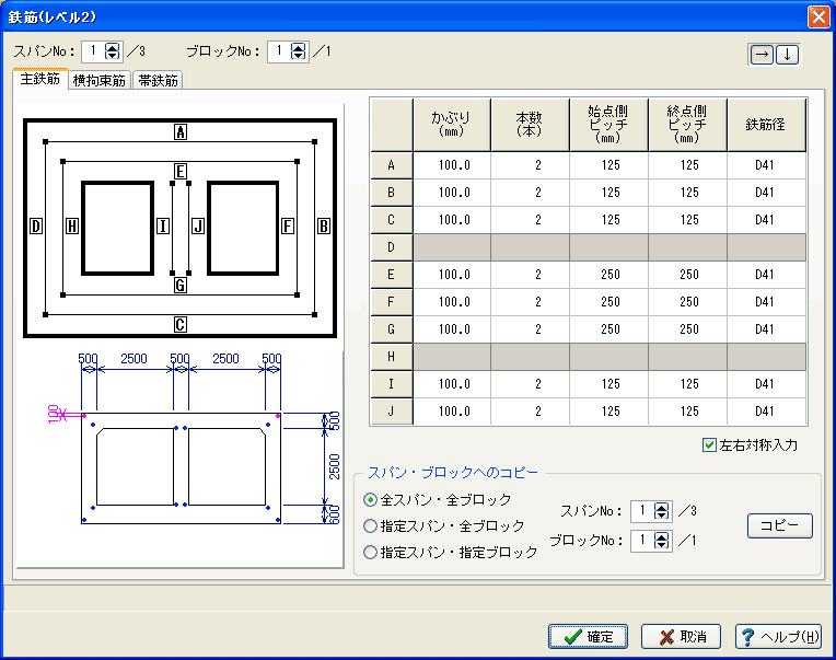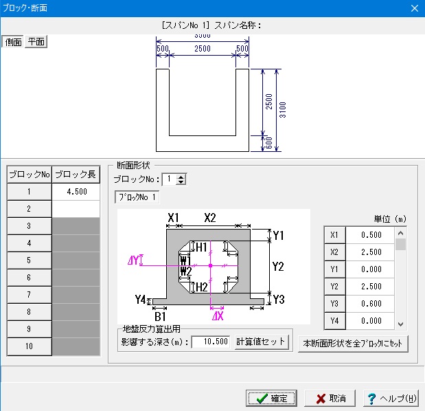 | スパン、ブロック数 | 最大50スパン、最大10ブロック/スパン ※ブロックごとに断面を定義することが可能です。 |