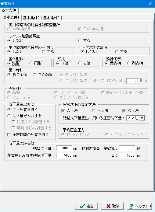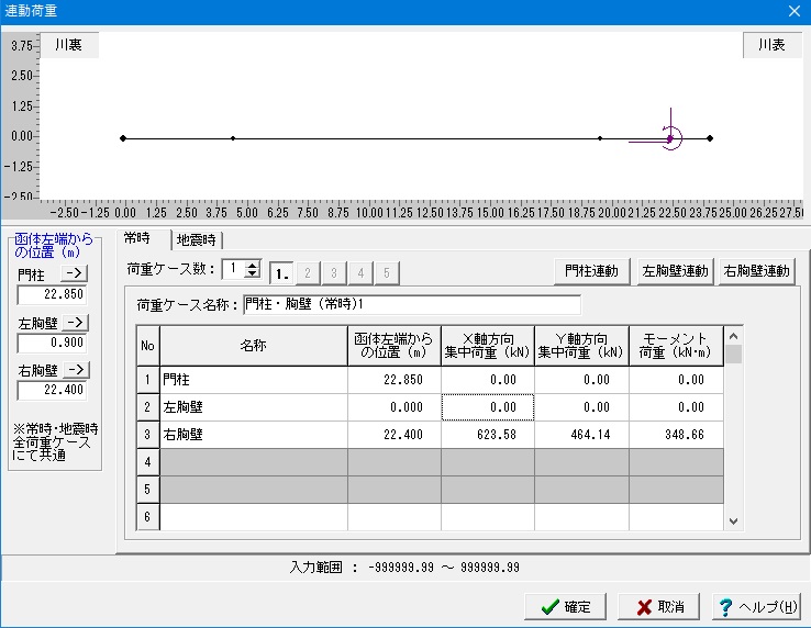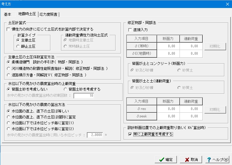 | 検討ケース数 | 常時、地震時ごとに最大5ケースまで指定可能 |