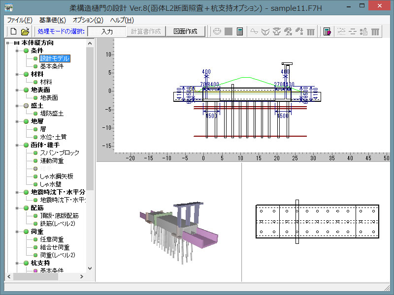 | 柔構造樋門の設計・3D配筋 Ver.18 | ||