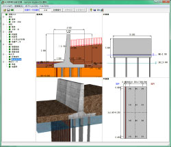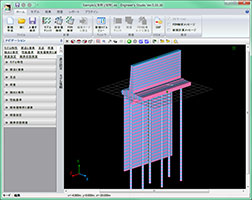 本製品は、「河川構造物の耐震性能照査指針・解説(平成24年2月)」に準拠した、コンクリート擁壁式特殊堤の設計計算を行うプログラムです。 竪壁部と基礎部(杭基礎、うなぎ止め矢板を含む)を全体でモデル化した一体解析により、耐震性能照査を行います。