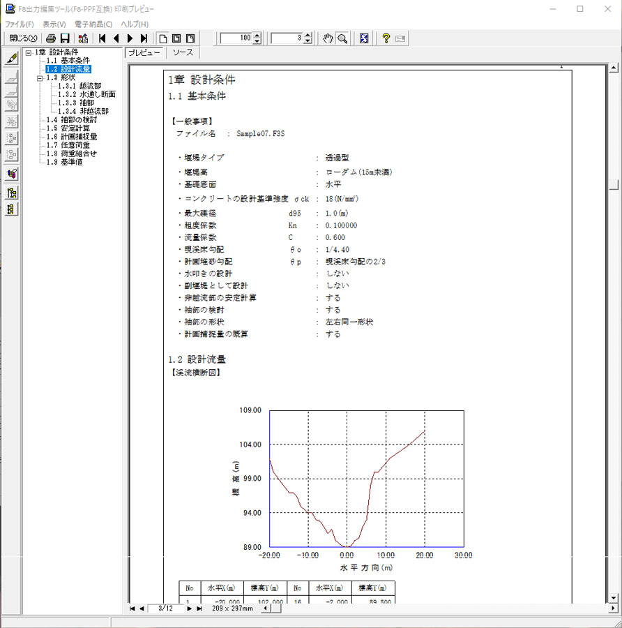 指針解説に準拠した砂防堰堤の設計計算、図面作成プログラム