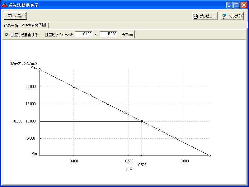 ▲逆算法におけるc-tanφ図出力