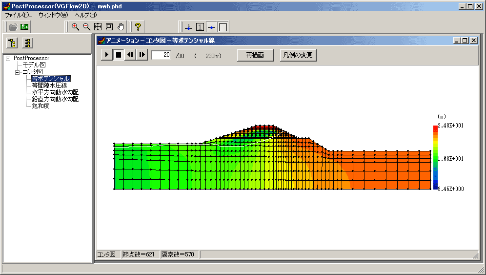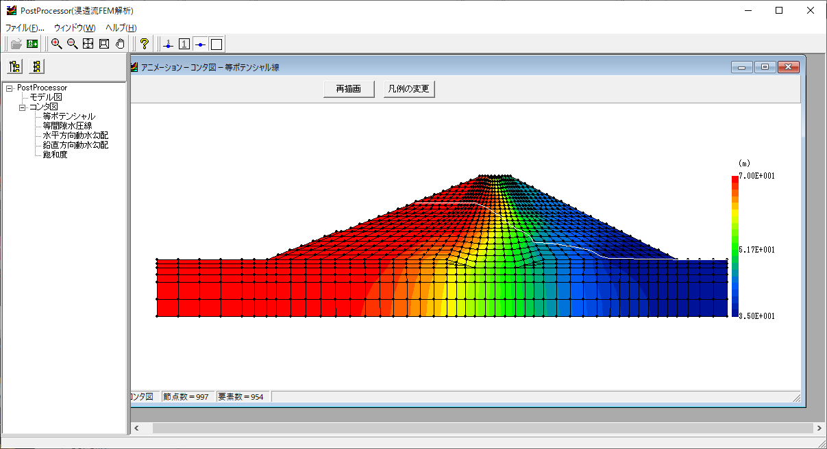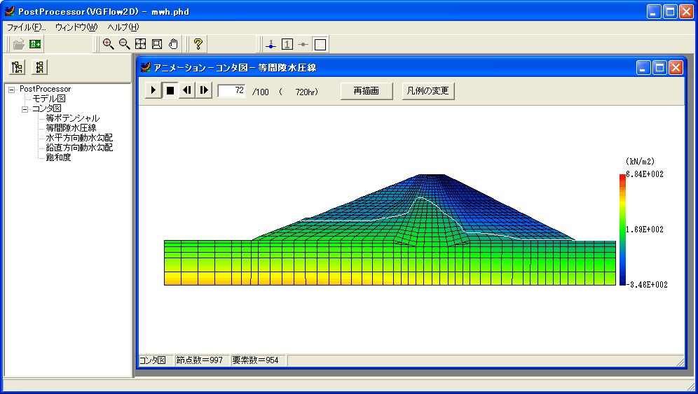 ▲浸透流FEM解析PostProcessorによるアニメーション出力