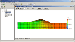 「浸透流FEM解析」では、鉛直二次元飽和/不飽和浸透流FEM解析及び解析結果のアニメーション出力が行え、その解析結果を斜面安定プログラムにインポートすることによる、浸透に起因するすべり破壊の照査が可能です。