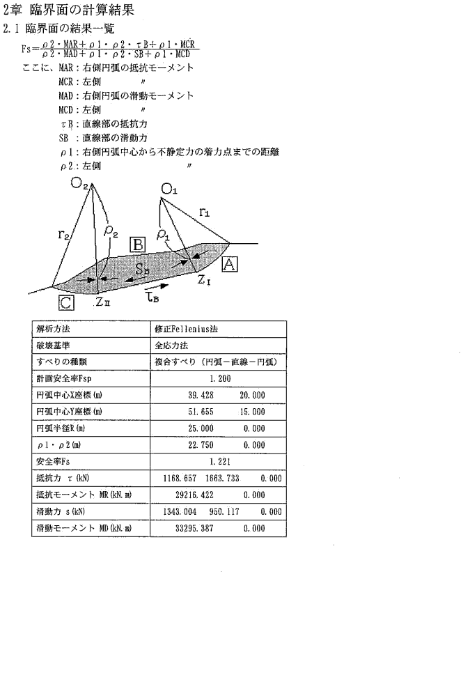 対応計算 すべり面 円弧すべり、