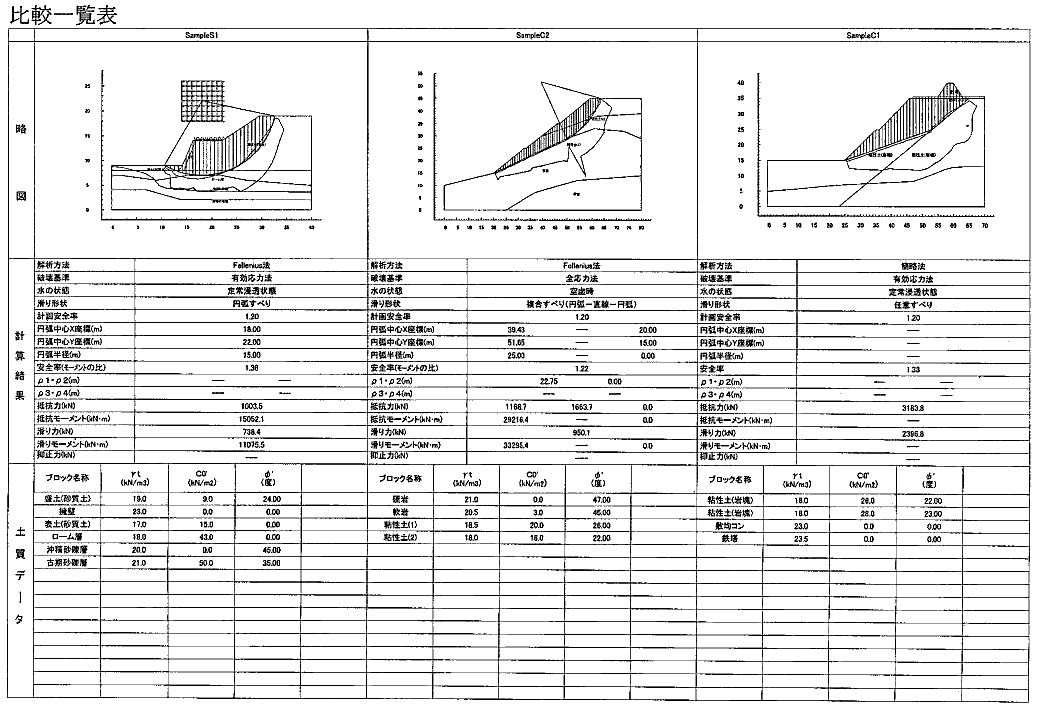 各種設計基準類にて規定される各種土構造物・地すべり解析・防災対策・河川構造物の設計等に対応した斜面安定解析システム