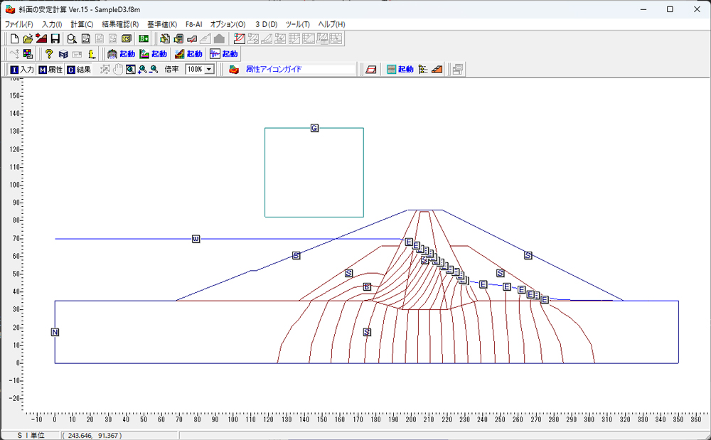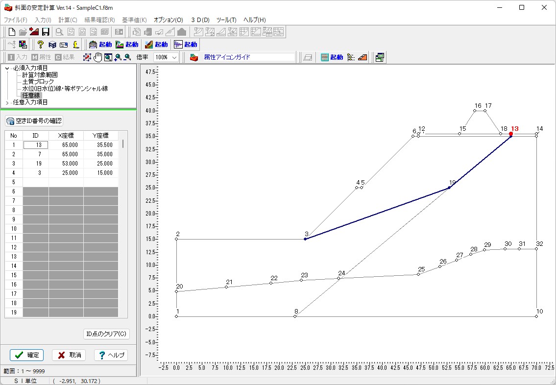 ▲入力メイン画面(斜面安定解析)