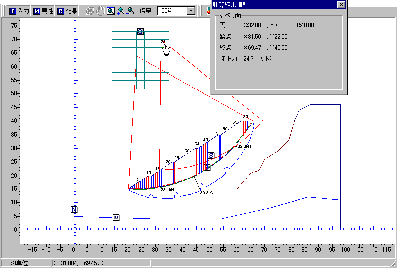 出力機能 検討格子内コンター描画(安全率・抑止力)