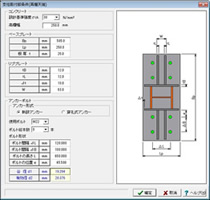 アンカープレートのチェックに対応しています。また穿孔式アンカーはありますので、樹脂アンカーを穿孔式アンカー材料として最大引張強度などを登録して頂ければ、対応可能です。