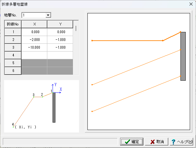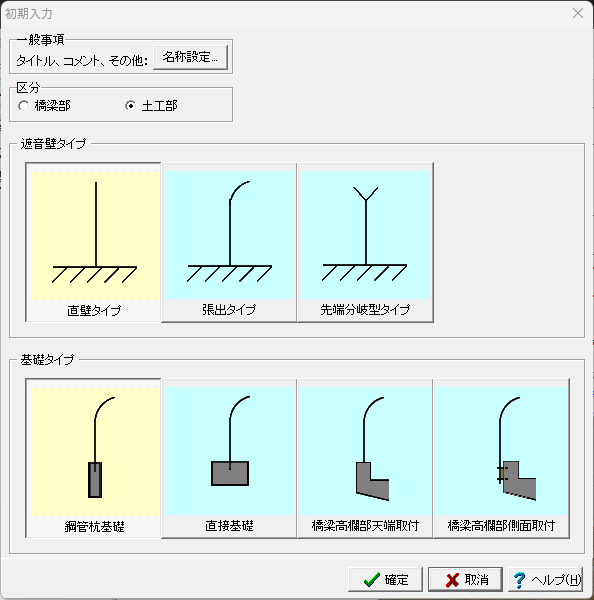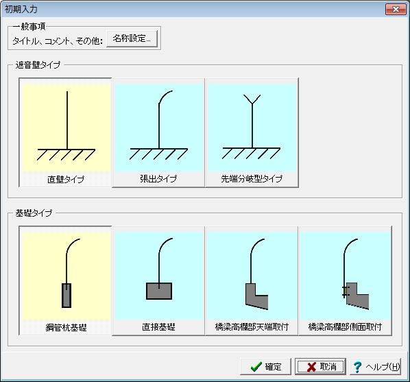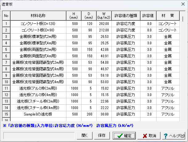 1.[基準値]メニューの[遮音板]ダイアログにて、ご使用になる土留め板の名称、諸値等を登録します。