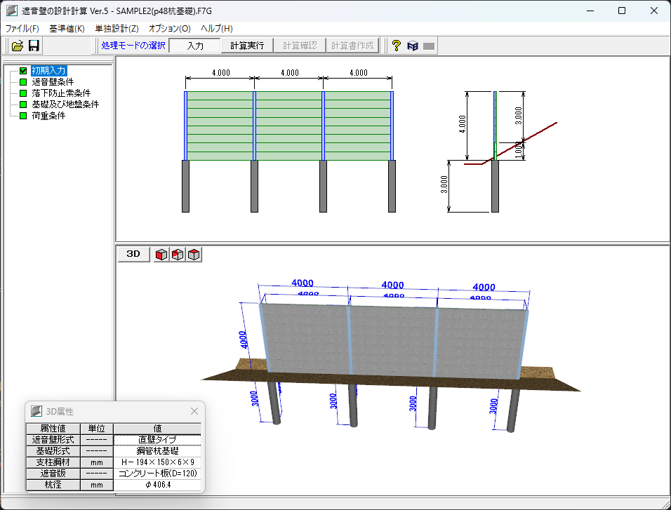 | 遮音壁の設計計算 Ver.5 | ||